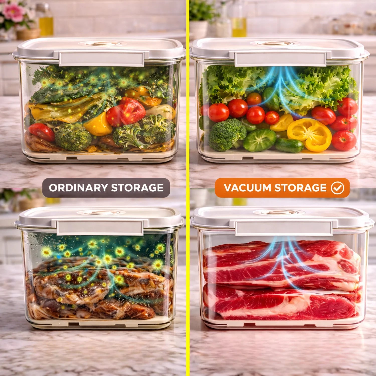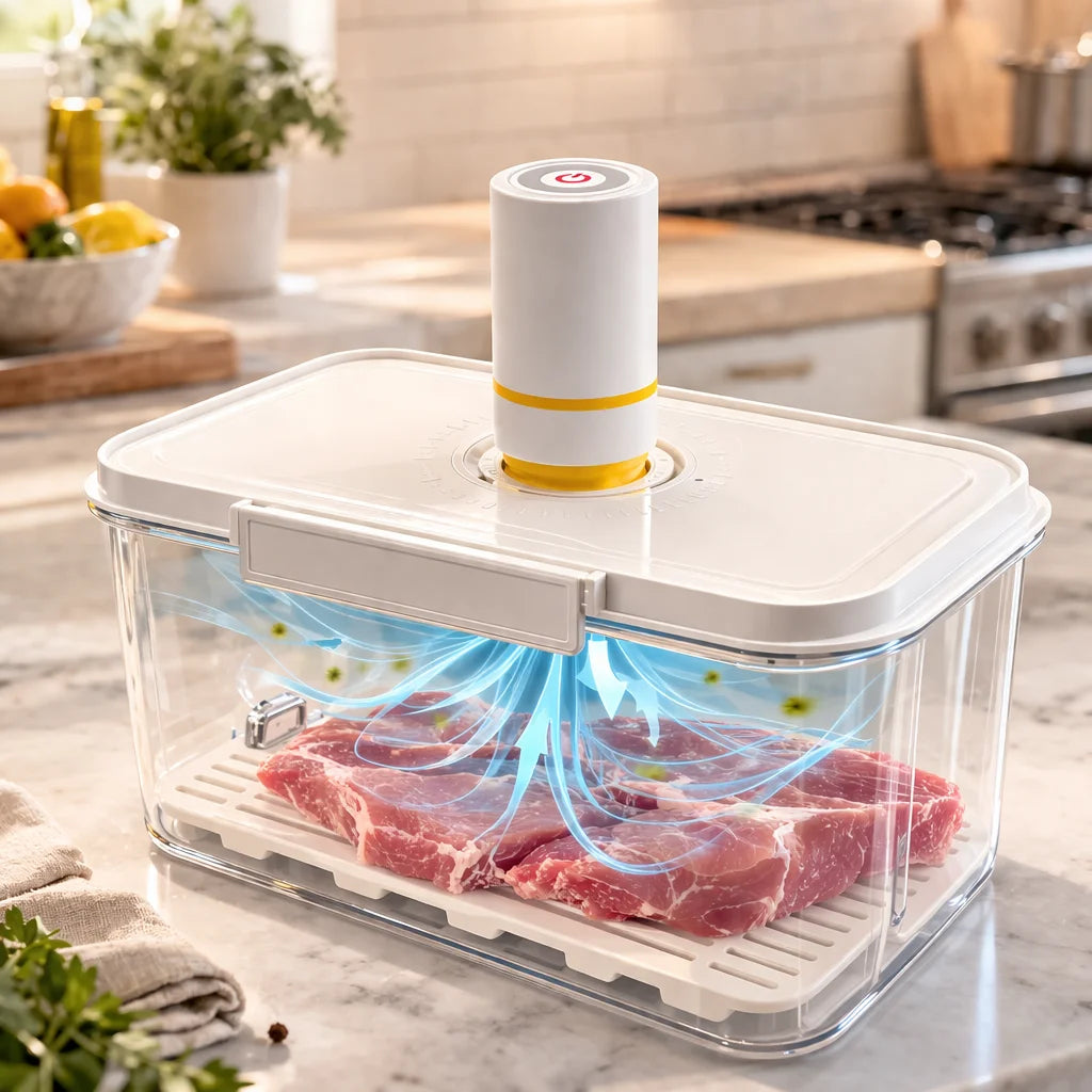 One-touch vacuum seal for easy, airtight food storage